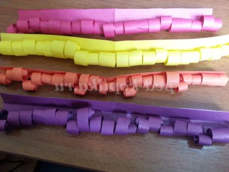 1. Готуємо 5 різнокольорових аркушів кольорового паперу (за бажанням можна зробити букет побільше).