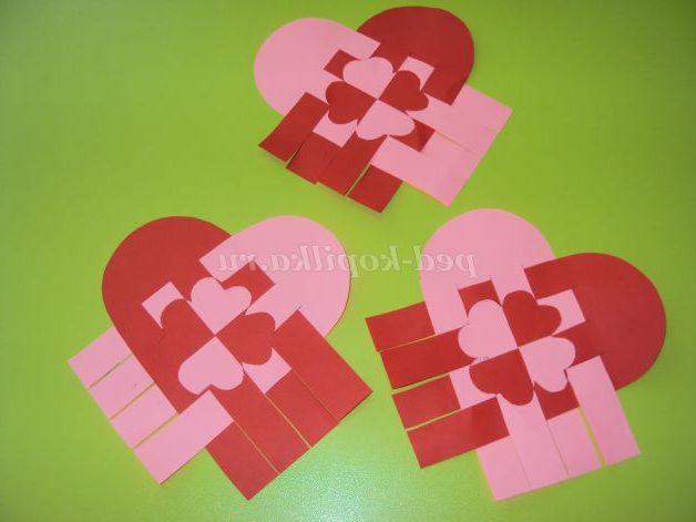 Вихователь показує дітям розрізані «сердечка - валентинки», різного кольору і різного розміру.