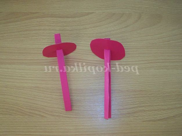 Виріжемо кола d = 5 см, зробимо отвір для паличок по середині. Виріжемо прямокутник 2см/12 см, складемо - вийшли палички.