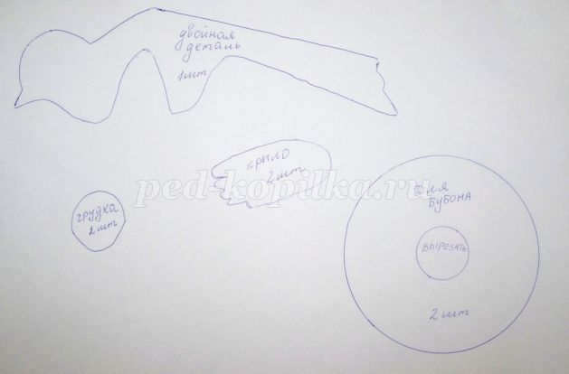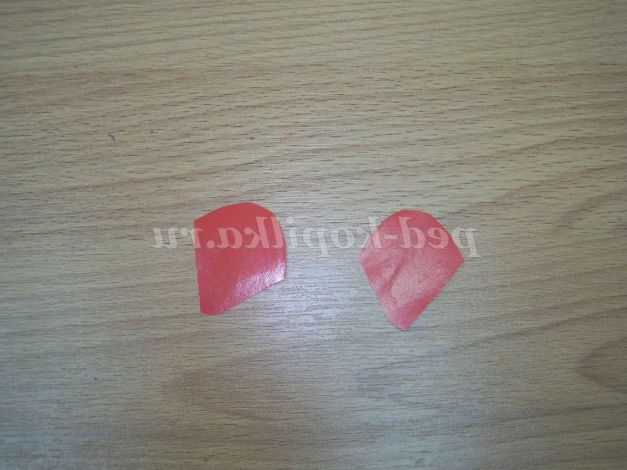 Потім візьмемо папір червоного кольору і намалюємо і виріжемо грудку