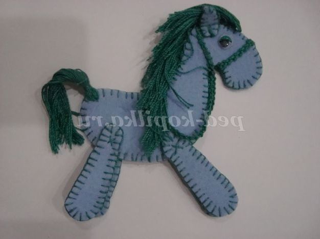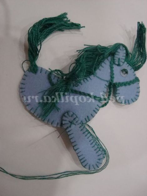 8. Приклеюємо оченята, пришиваємо вушка, гриву і хвіст