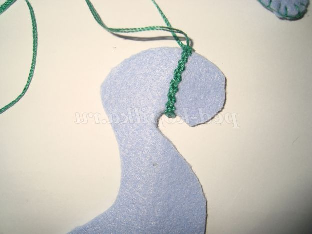3. Обробляємо край петельним швом. Коли починаємо робити петельний шов, ховаємо нитку всередину фетру, тоді закріпки не видно, і стібок виходить дуже акуратний