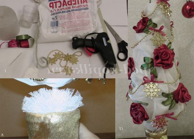 топіарі своїми руками, новорічний топіари, ялинка своїми руками, ялинка з атласних стрічок, ялинка з атласних стрічок, вишивка стрічками