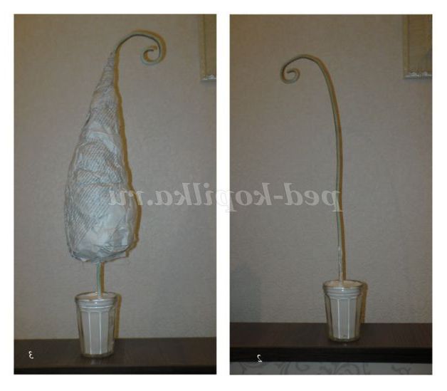3. дріт (для круглих дерев топіари можна використовувати гілочки сосни, красиво вигнуті, тут ми беремо дротик, щоб можна було зробити завиток на верхівці ялинки)