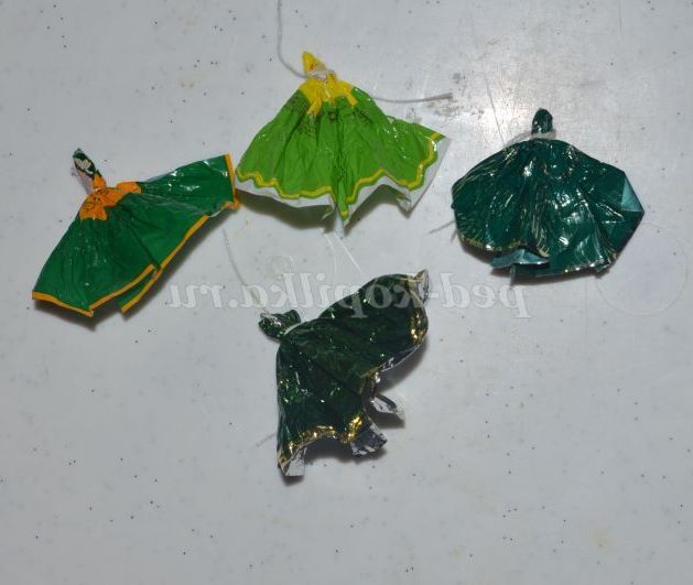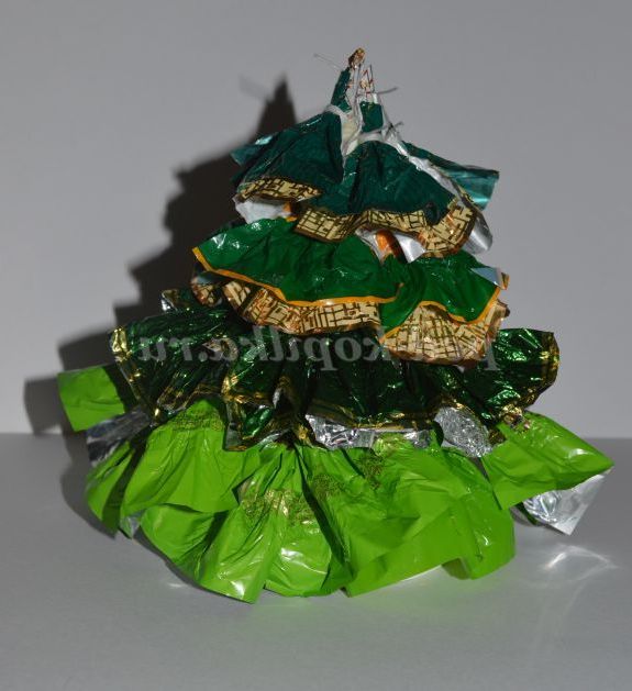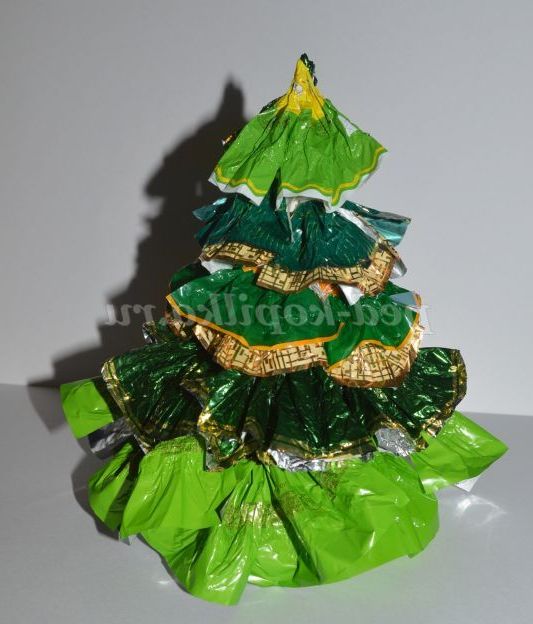 Для ялинки можна використовувати фантики різних кольорів і відтінків.
