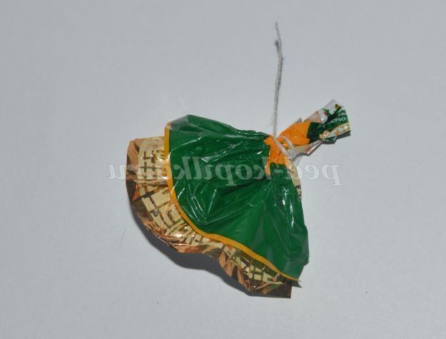 Закручуємо фантик по середині, трохи згинаємо і на місці згину перев'язуємо нитками.