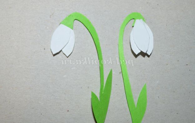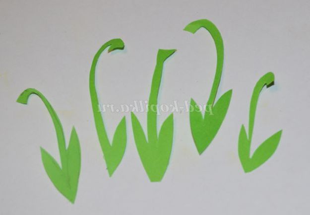 Вирізаємо стеблинки у пролісків. Краще брати двосторонній папір.
