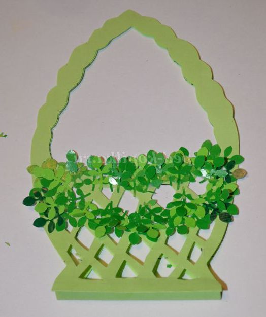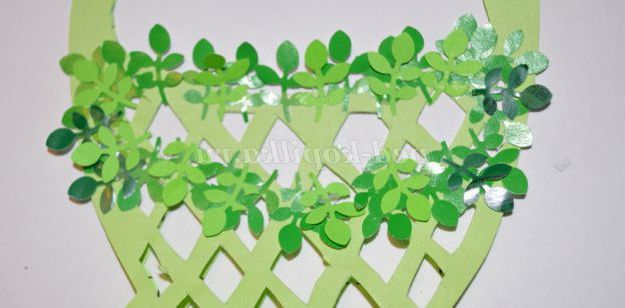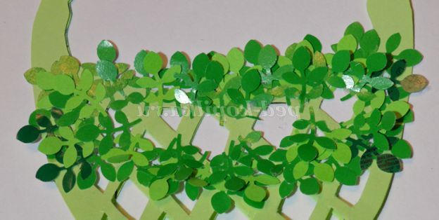 Для оформлення кошики фігурним дироколом робимо листочки.