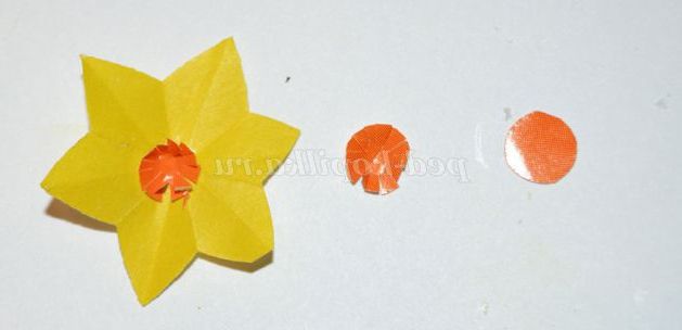 Збираємо пролісок. Склеюємо пелюстки один з одним.