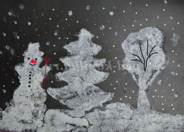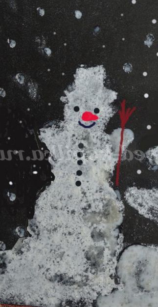Коли добре висохне, можна підмалювати сніговикові очі, ніс. Підмалювати окремі деталі