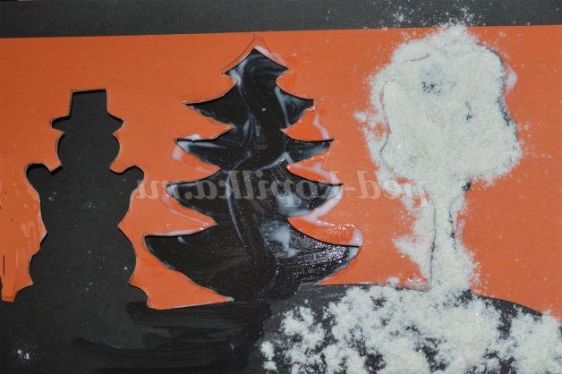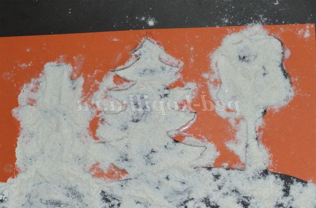 Для роботи нам знадобляться: листи темного картону, клей ПВА, ножиці, простий олівець, суміш з цукру та борошна, паперові шаблони-їх ми зробимо самі.