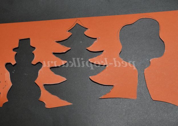 Малюнок вирізаємо по контуру. Вийшов готовий шаблон. Покладіть його зверху на темний картон.