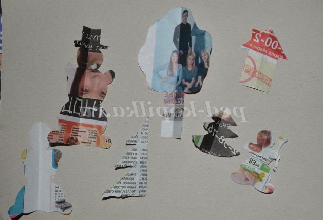 Газетні фігурки розкладаємо на картоні і обводимо їх олівцем.