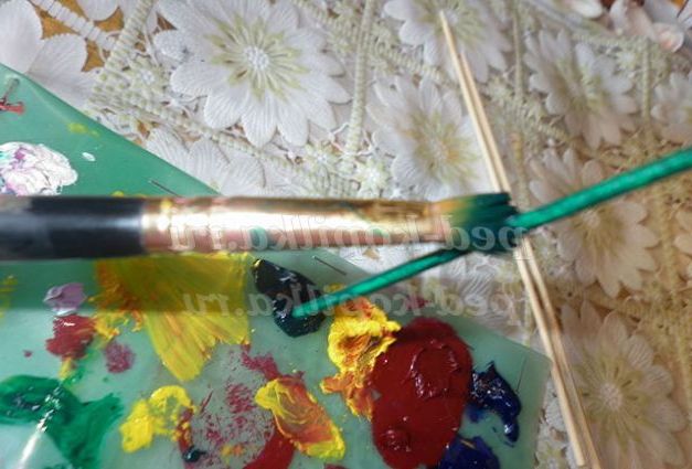 Спочатку потрібно підготувати гілочки, візьміть шпажки і фарбуєте в зелений колір.