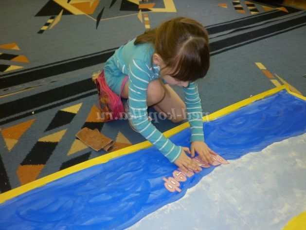 але і сюрприз. Вирішили, що ми будемо робити колаж! Працювали ми з дітьми довго і наполегливо. Вся робота виконувалася у кілька занять. Спочатку ми підготували основу для колажу, для цього ми взяли два ватману, склеїли їх між собою, вийшов великий плакат. Потім намалювали на ньому море, небо, горизонт, рамку.