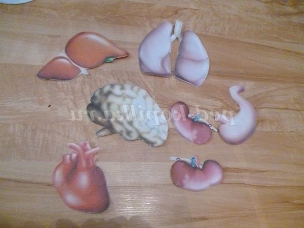 Плоска основа, у вигляді тіла людини і окремі частини зовнішнього (руки, ноги, тулуб, волосся, брови, очі, ніс, рот, вуха) і внутрішньої будови (мозок, серце, легені, шлунок, печінка, нирки).