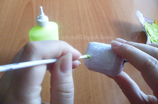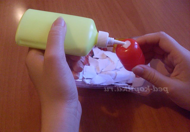 Основою квітки буде кіндер-сюрприз. Обклеюємо його простий папером, щоб торцовочки краще трималися.