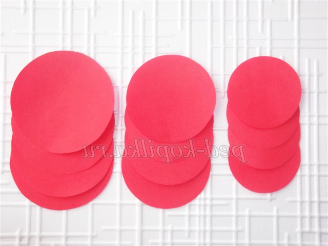 7. Збираємо квітка за допомогою клею. Спочатку склеюємо великі кола, потім середні і маленькі. Важливо, щоб між пелюстками не було просвітів.