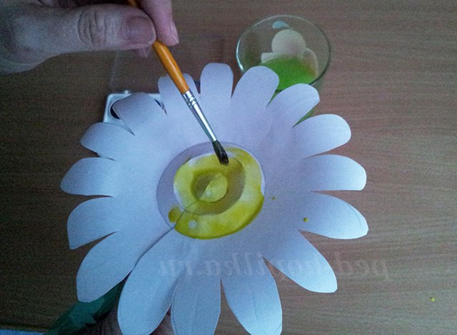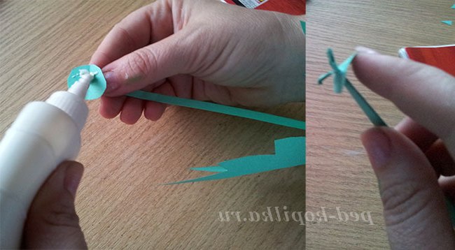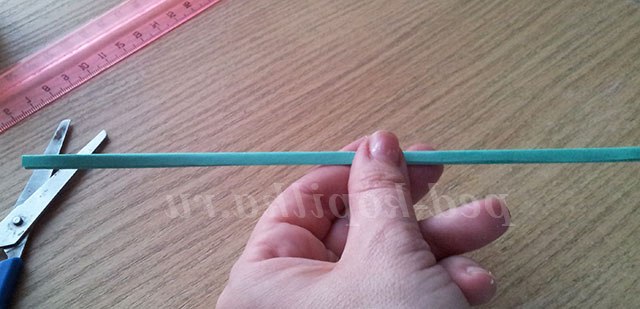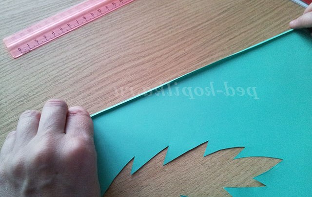 9. Із зеленої двостороннього паперу вирізаємо пелюстки
