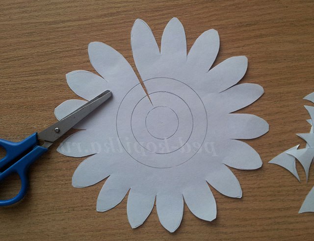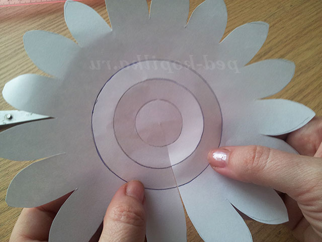 6. Зсуваючи на один пелюстка, вигинаємо середину