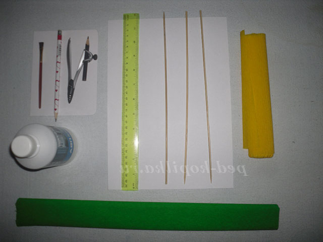 10. Від жовтої гофрованого паперу відрізати дві смужки шириною 2 див.