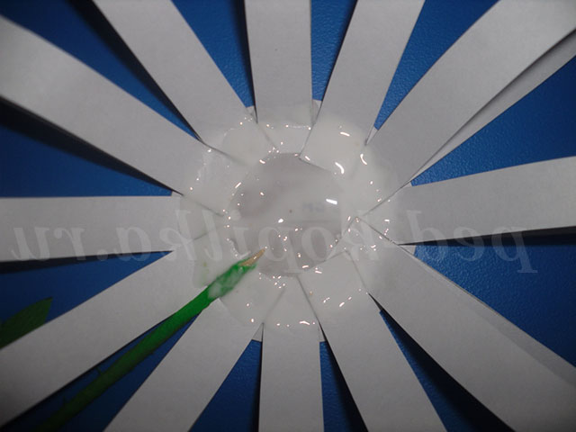 13. Паперові крапельки приклеїти до кола, вставити паличку і рясно намазати клеєм.