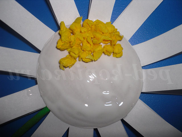 15. Коло рясно покрити клеєм. На клей викладаємо паперові грудочки.