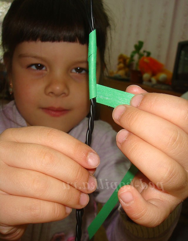 На смужки зеленого паперу наносимо клей і обмотуємо ними дріт - виходить стеблинка.