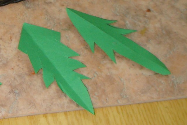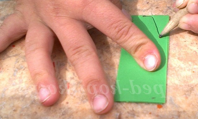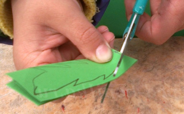 13. Щоб виготовити листи, смужки зеленого паперу складаємо в четверо.