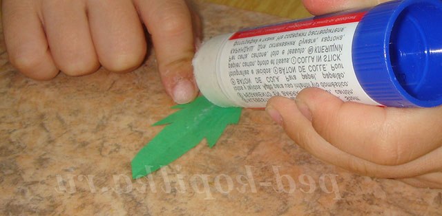 На готовий лист по лінії згину наносимо клей і приклеюємо до стеблинки.