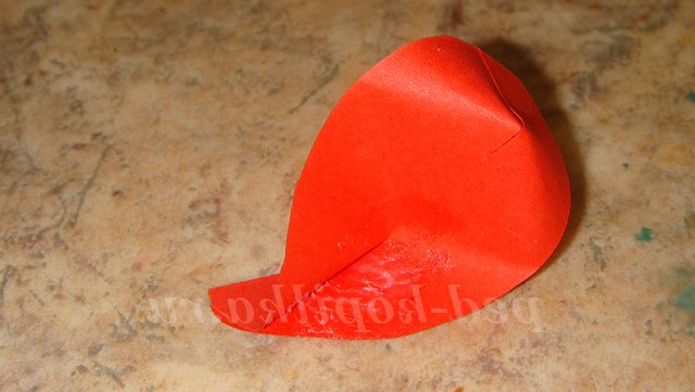 7. Щоб приклеювати пелюстки до основи «хвостик» пелюстки із зворотного боку закріплюємо клеєм.