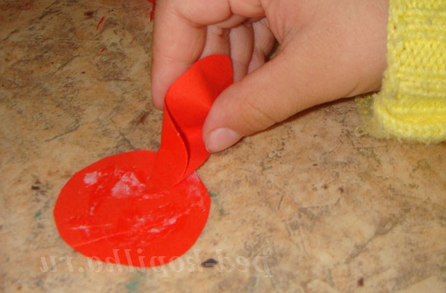 Надрізи приклеюємо, один до одного так, щоб і «гірка» і «ямка» дивилися в одну сторону. Так склеюємо всі 15 пелюсток.