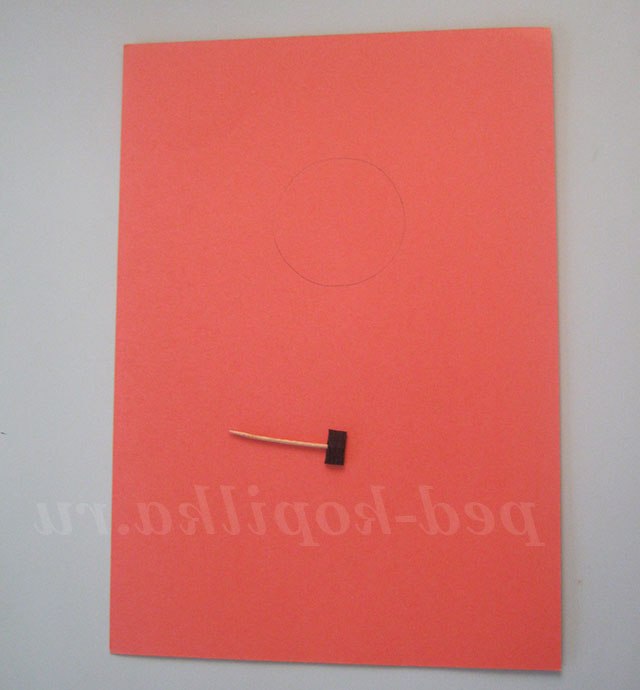 3. Узяти порожній стрижень від кулькової ручки або зубочистку. Приступаємо до виготовлення середини квітки. Беремо зубочистку і ставимо його на середину квадрата. Складаємо квадрат навпіл сторона до сторони і скручуємо пальцями квадрат, отримуємо торцювання.