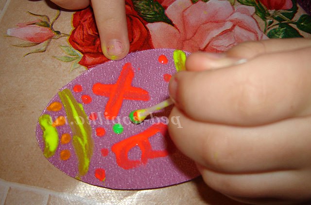 Акриловими фарбами наносимо візерунок на заготовки. Даємо фарбам висохнути.