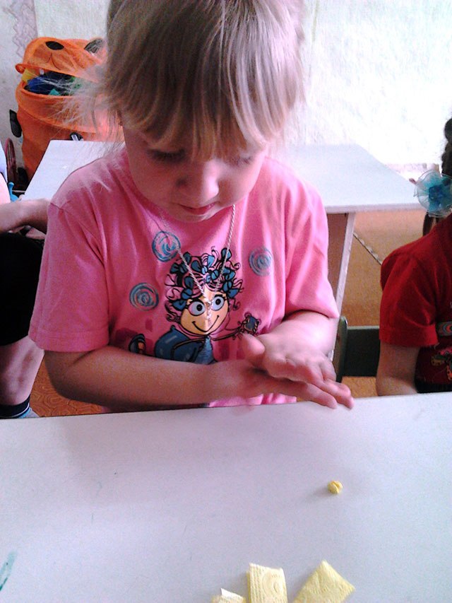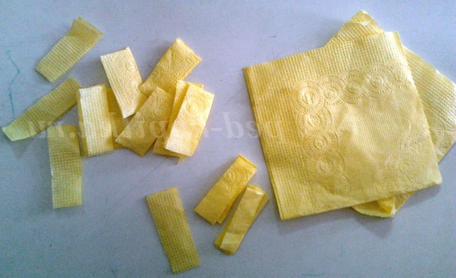6. Нарізаємо серветки маленькими квадратиками і сминаем їх у кульки.