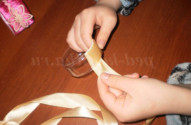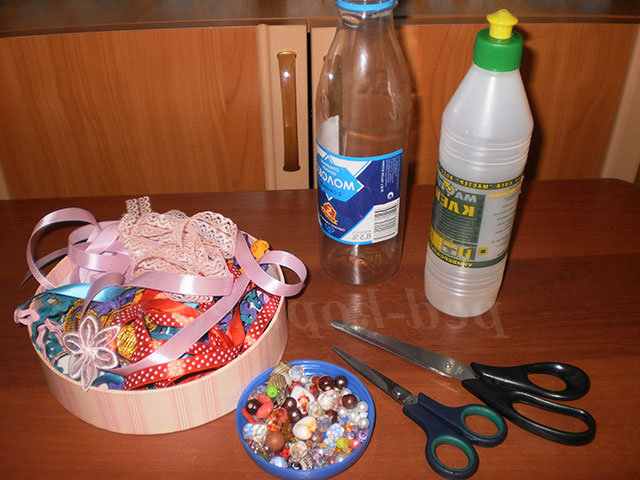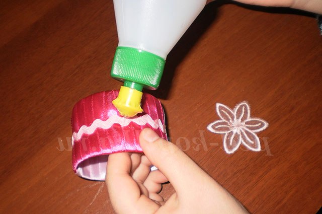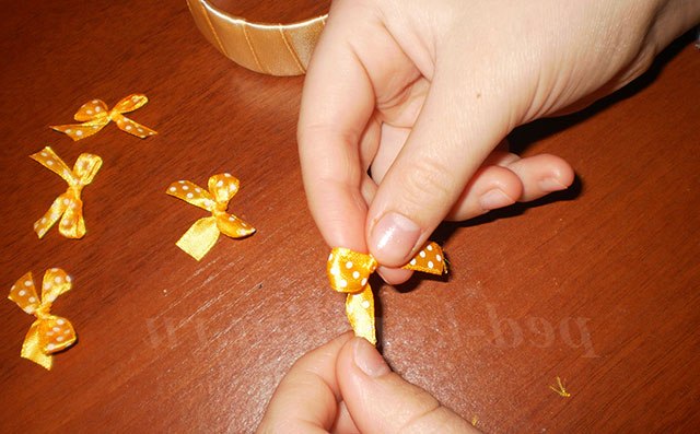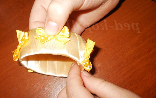 4. За допомогою клею прикріплюємо прикраси: намистини, бантики