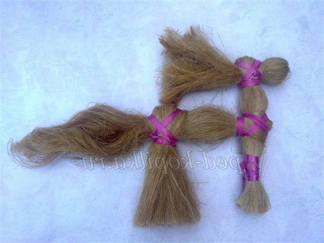 17. Ділимо льон навпіл, формуємо ноги, перев'язуємо стрічкою.