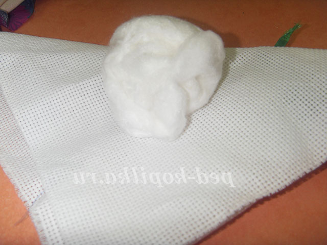 На середину білого клаптя поміщаємо шматочок вати і сматываем,