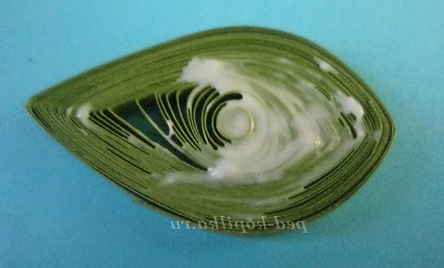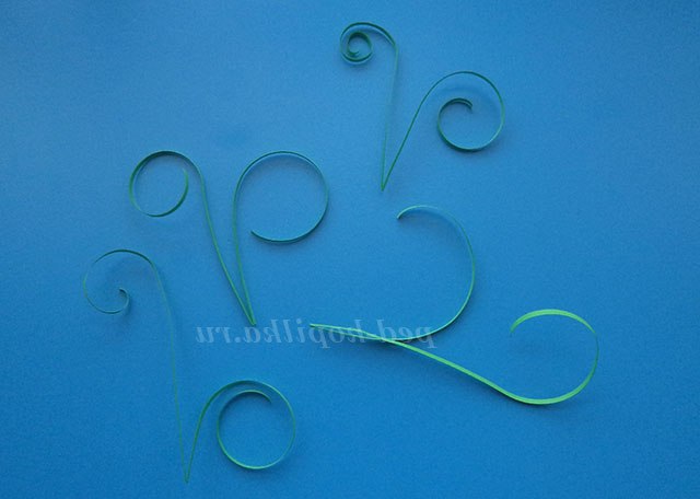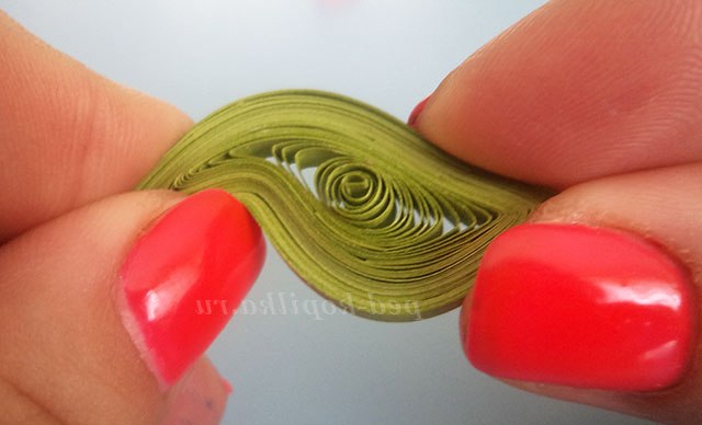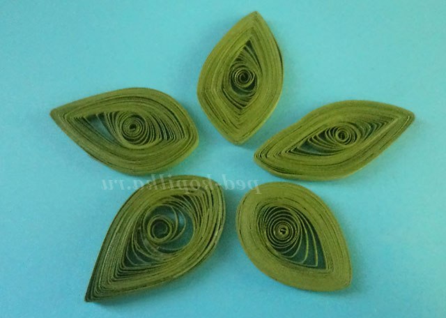 Робимо листочки у формі «Крапля». Тут я поєднала 3 зелені відтінки, починаючи від світлого до темного, і закінчуючи найтемнішим.