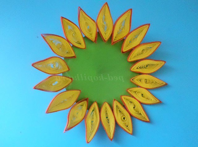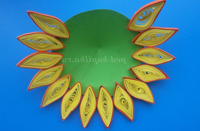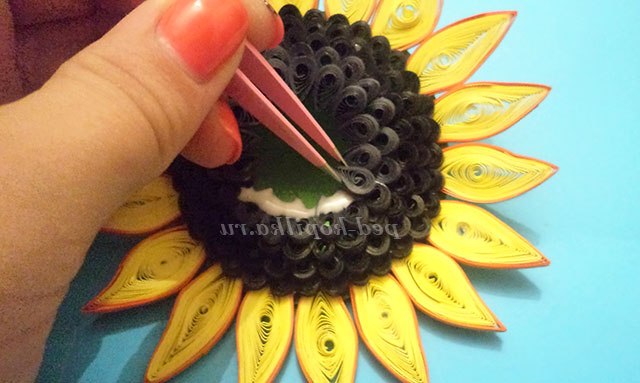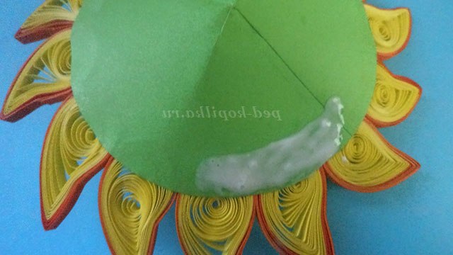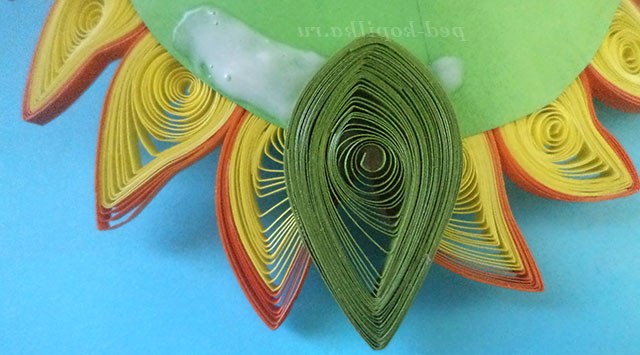 Пелюстки починаємо приклеювати на квітколоже (всі етапи, як для першого соняшника).