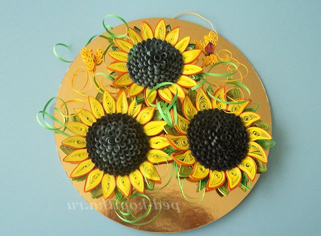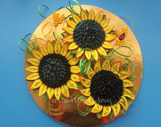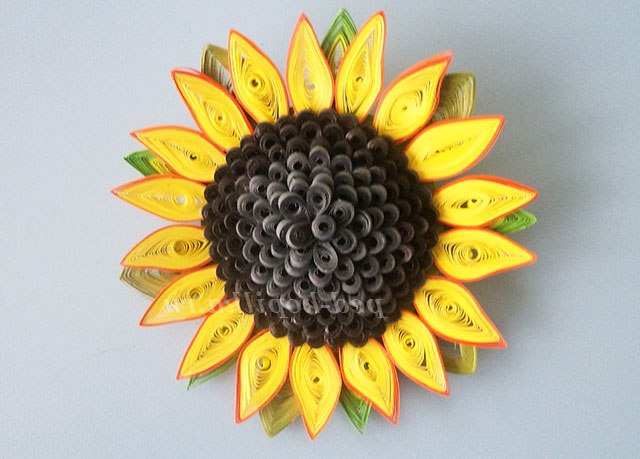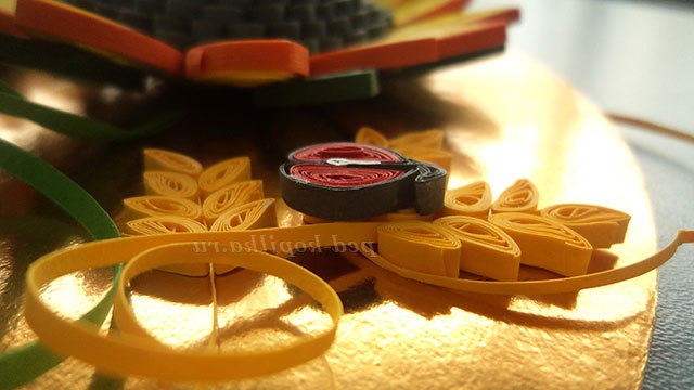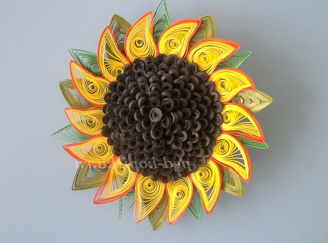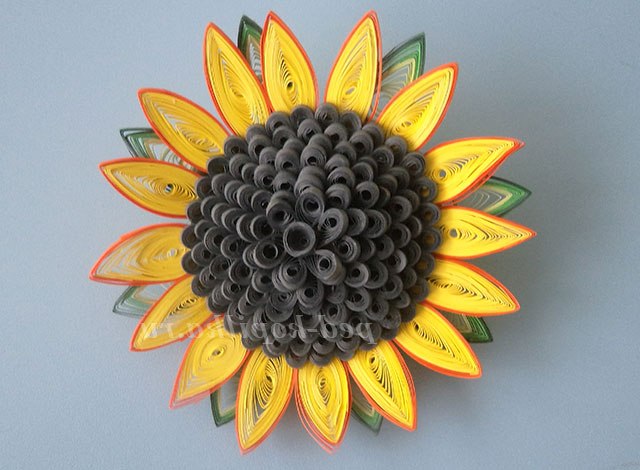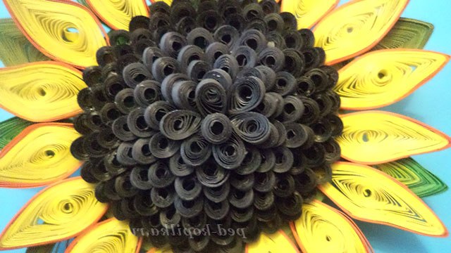 Для виготовлення насіння другого соняшника я використовувала смужки іншого відтінку «Графіт». Даний відтінок більше схожий на справжні насіння.