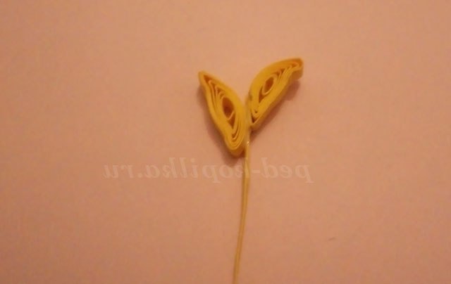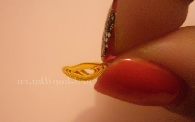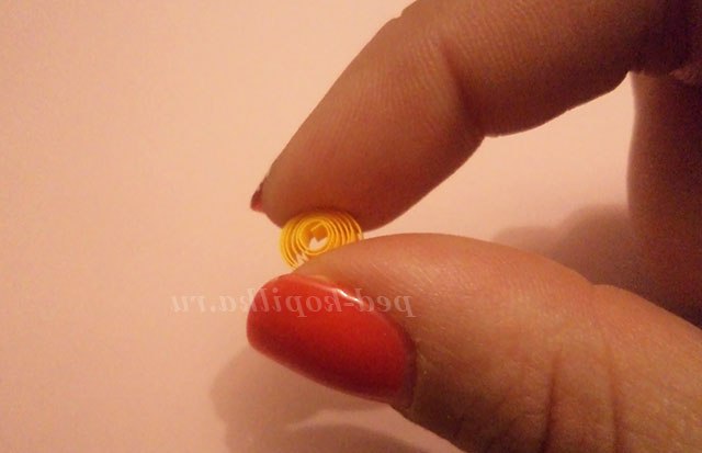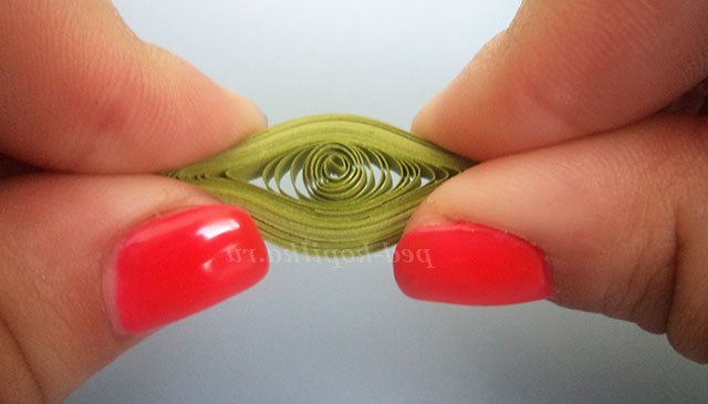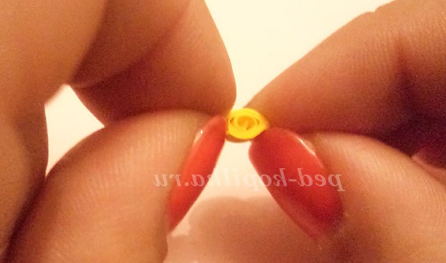 Сформувала маленький «око». Для цього ноготочками здавила рол з двох сторін, приклеїла хвостик.