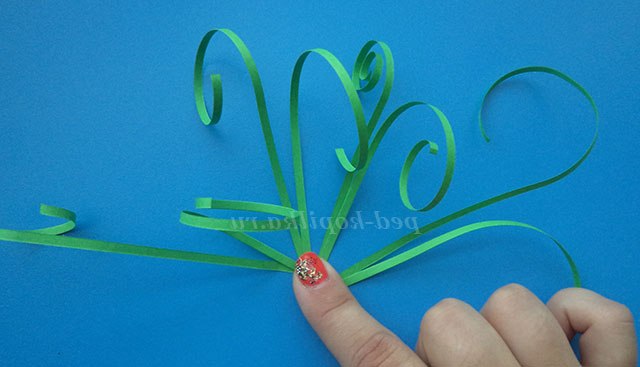 Далі мені захотілося додати зелені. Для цього я взяла яскраво-зелені смужки, склала навпіл.