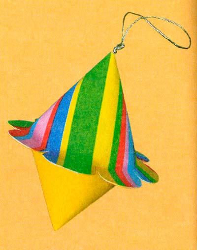 • У верхню частину одного з конусів вставити петельку з тонкого шнура, зав'язавши її всередині вузлом так, щоб вона не випадала.