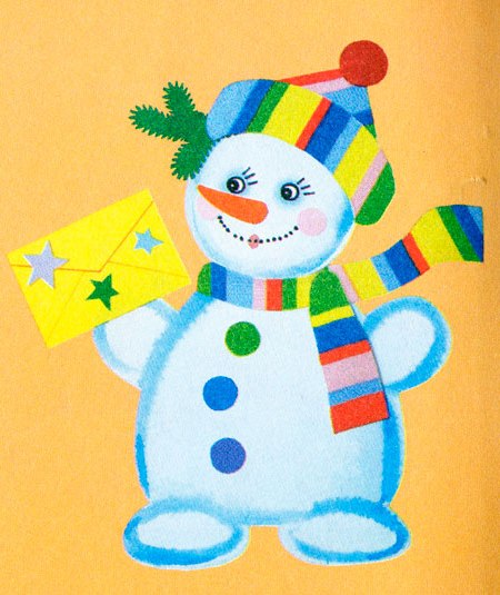 • Приклеїти звисає частина шарфика до сніговикові (1).