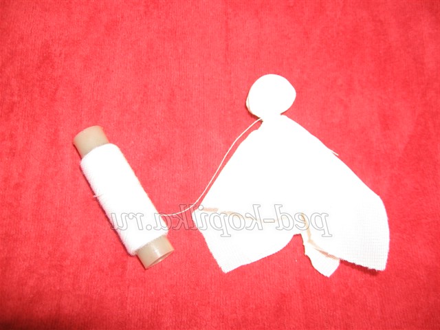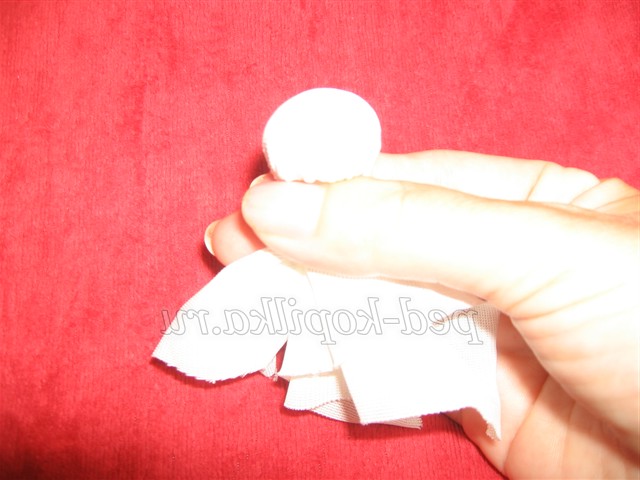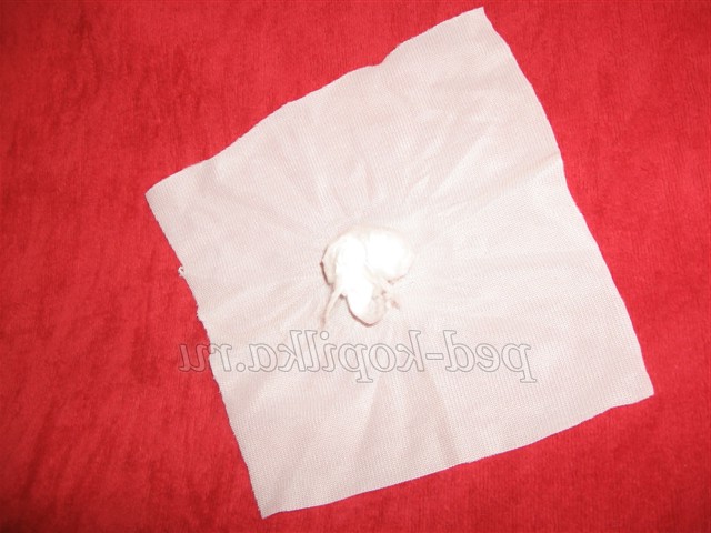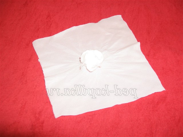 1. Покласти вату в центр білої тканини 12х12см, зробити вузлову конструкцію, зафіксувати нитками.