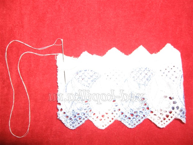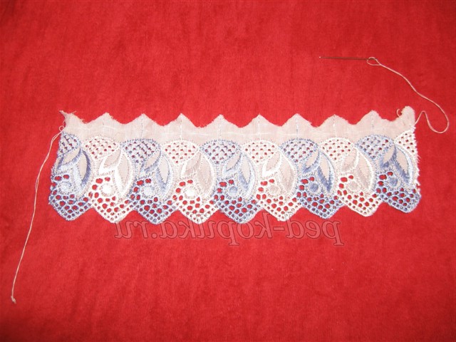3. Кольорове мереживо скласти навпіл і прошити по бічному краю.