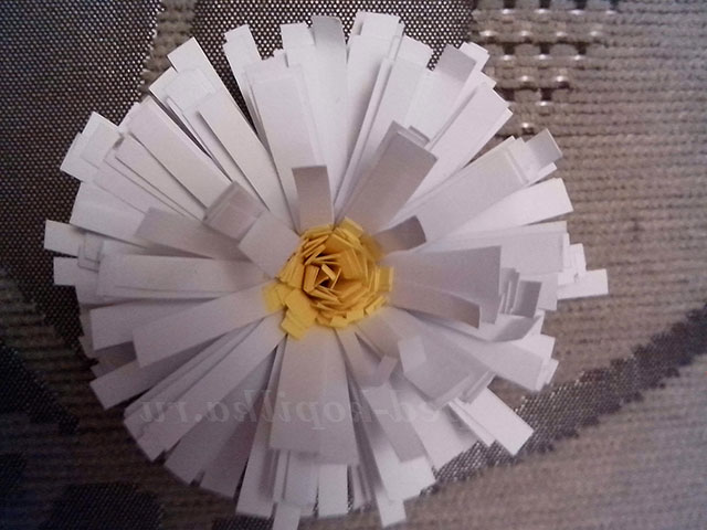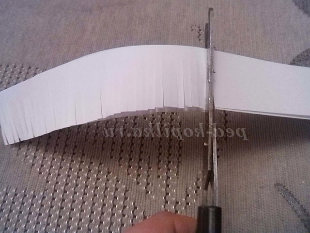 Тепер її треба прикрасити: для цього беремо будь-яку кольоровий папір формату А4 , нарізаємо смужки довжиною