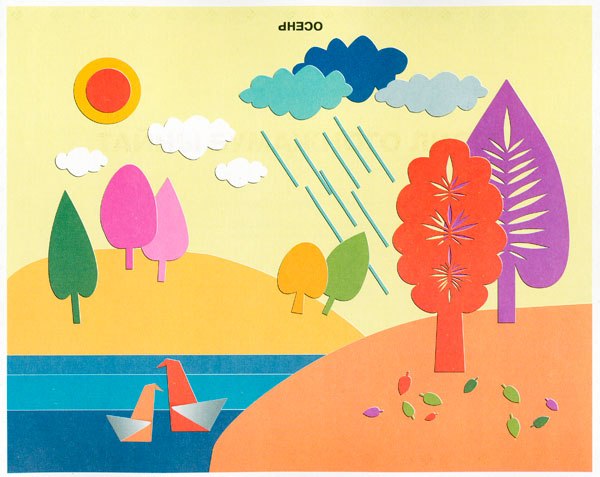 За підсумками занять 1-2 педагог може запропонувати дітям всім разом створити велику картину «Осінь». Добре, якщо педагог перед початком уроку на ватмані або полуватмане заготовит основу для картини, як показано на картинці.