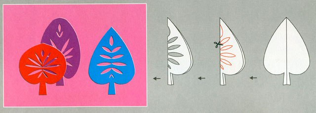 1. Виріж контури дерев, користуючись малюнками-схемами.